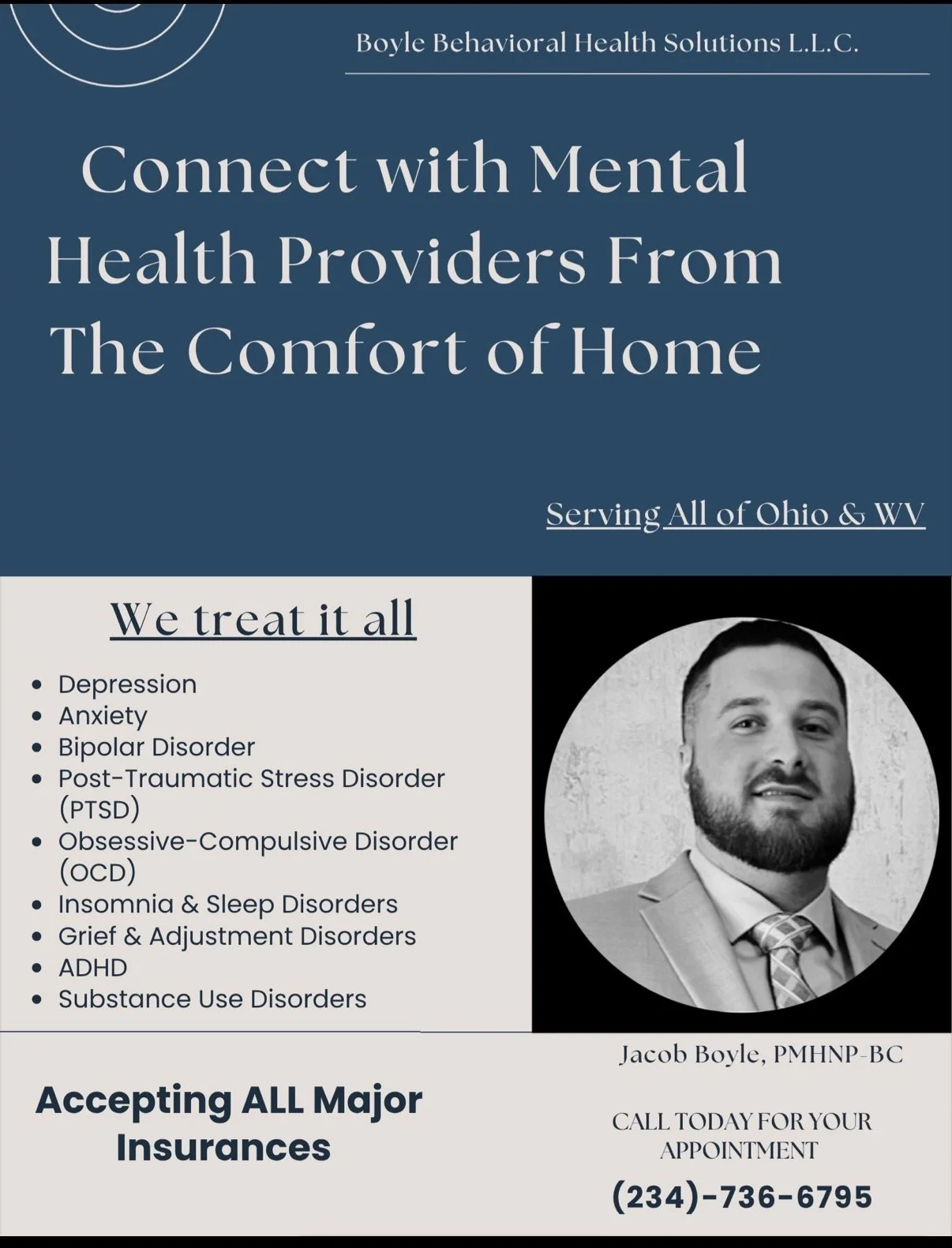 Booking an appointment has never been easier. Send us an Email at Boylebehavioralhealthsolutions@gmail.com or give us a call at (234)-736-6795 to schedule your Telehealth appointment today!
